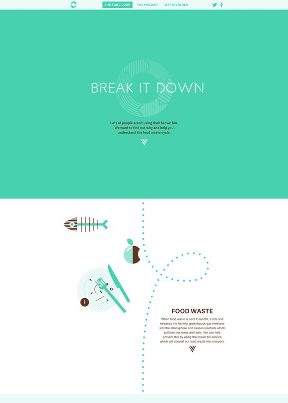 A szemét újrahasznosításáról szóló információs oldal, amely sajnos már nem elérhető. A Pintresten és néhány gyűjtőoldalon még a webdesign fent van, érdemes megnézni minden webdesigner tanfolyamot és grafikus tanfolyamot végző hallgatónknak, mert ez egy jó példa arra, hogyan lehet modern, letisztult formában átadni az információt.