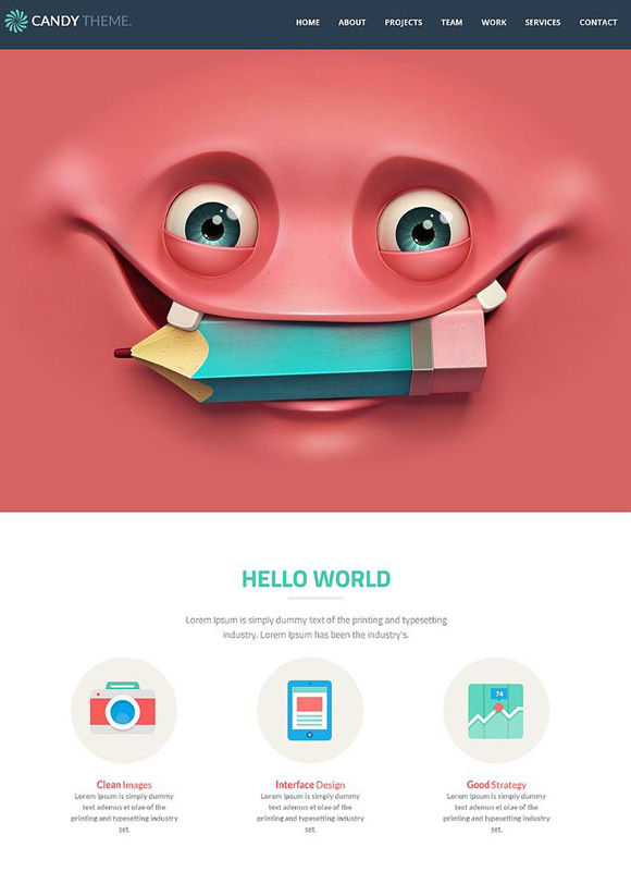 Candy egy minimál stílusú responsive flat design, amely kiváló lehet egy portfólió oldalnak. A responsive kialakítás lehetővé teszi, hogy a legtöbb mobil eszközön jól jelenjen meg a weboldal.